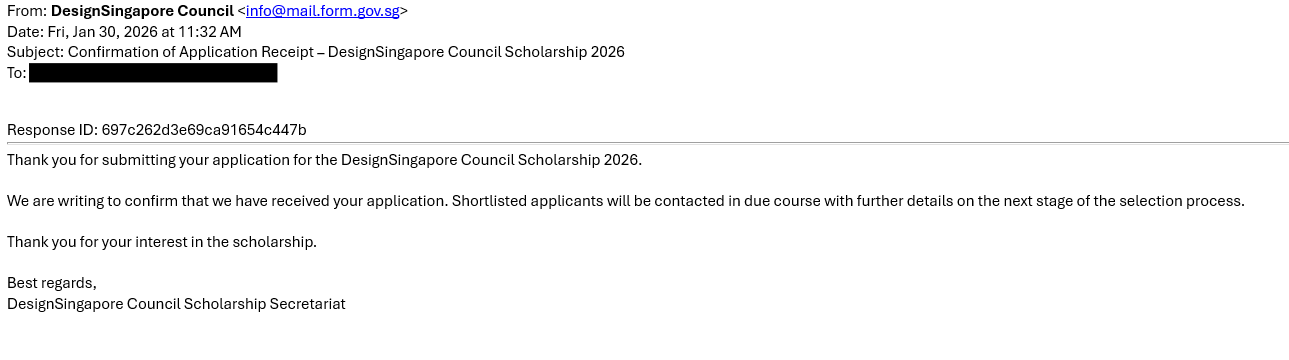 All applicants who have successfully submitted their application via the FormSG link should receive an email confirmation in the email address provided in the application form.